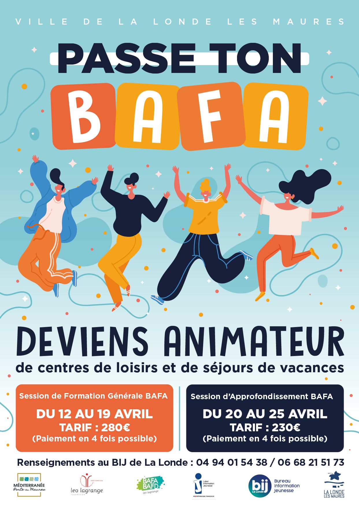 Ces formations, au tarif préférentiel, sont rendues possibles grâce au partenariat entre la commune de La Londe les Maures et l'Association Léo Lagrange PACA depuis de nombreuses années. De plus, les jeunes ont la possibilité d'obtenir des aides financières de la CAF et du Département pour suivre ces formations.