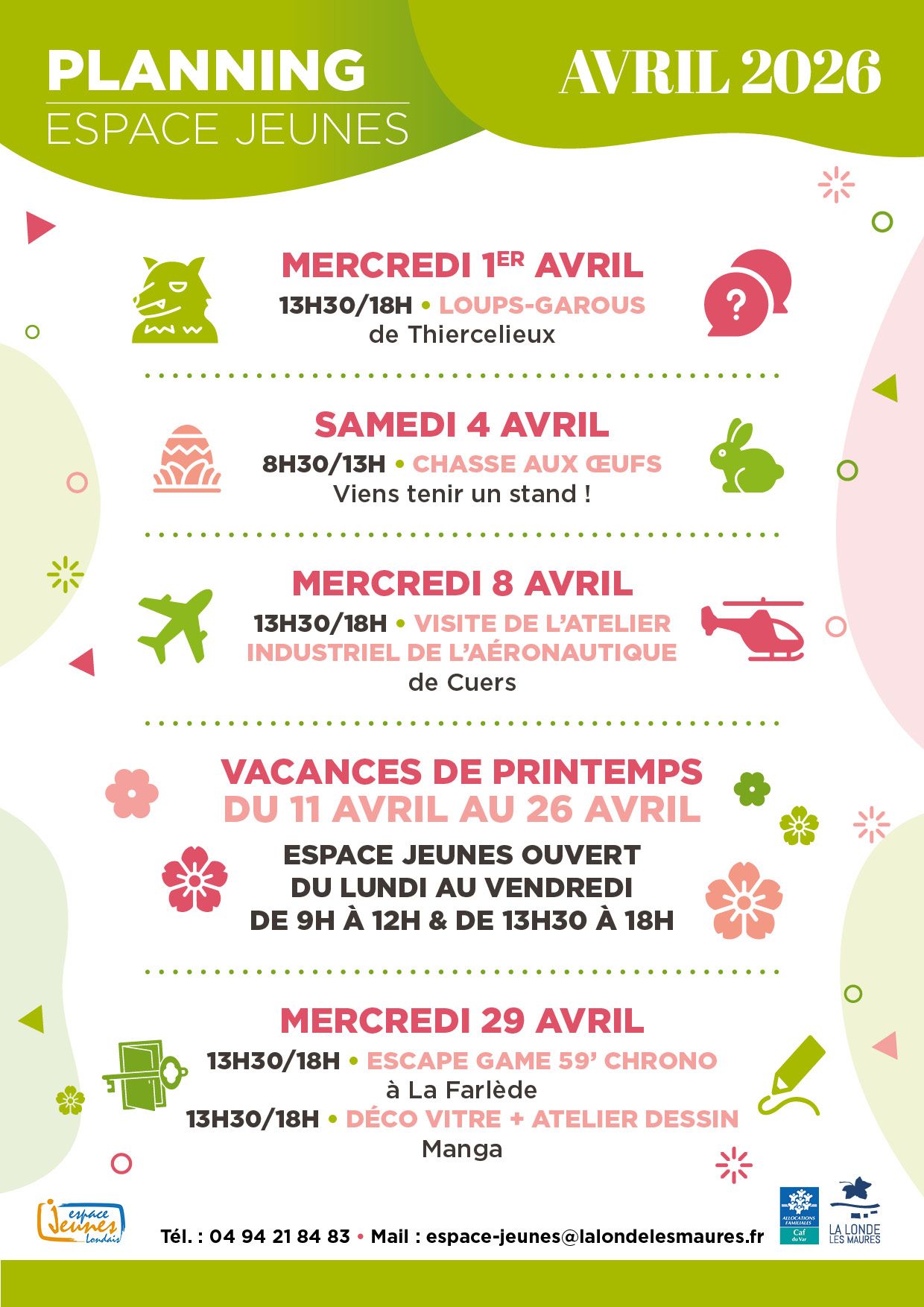 L'Espace Jeunes est un accueil de loisirs habilité par Jeunesse et Sports. Il propose, tout au long de l'année, des animations ludiques, éducatives, culturelles et sportives. Les adolescents, agés de 12 à 17 ans, s'épanouissent et se détendent dans un cadre rassurant. L'équipe d'encadrement veille au respect des règles de sécurité physique et psychologique. À chaque période, un programme est proposé, consultable sur place ou sur le site de la Ville. Ce programme est élaboré en concertation avec les jeunes adolescents. Pour les activités payantes, la participation des familles dépendra du quotient familial. Un pourcentage du coût réel du prestataire sera appliqué.