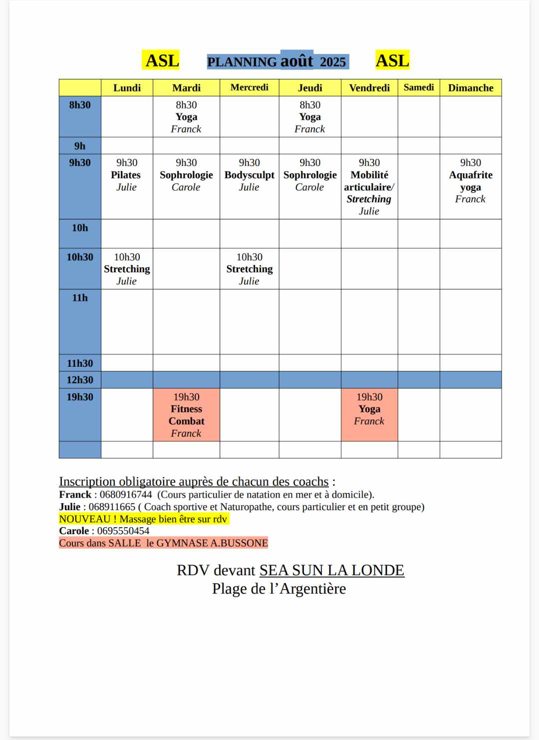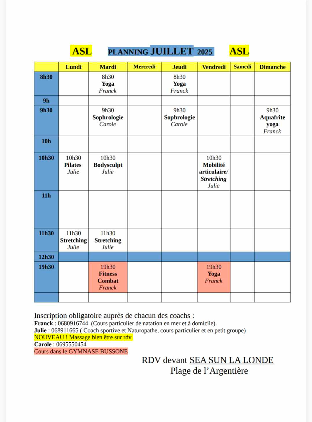 Les séances ont lieu devant le Sea Sun, plage de l'Argentière.