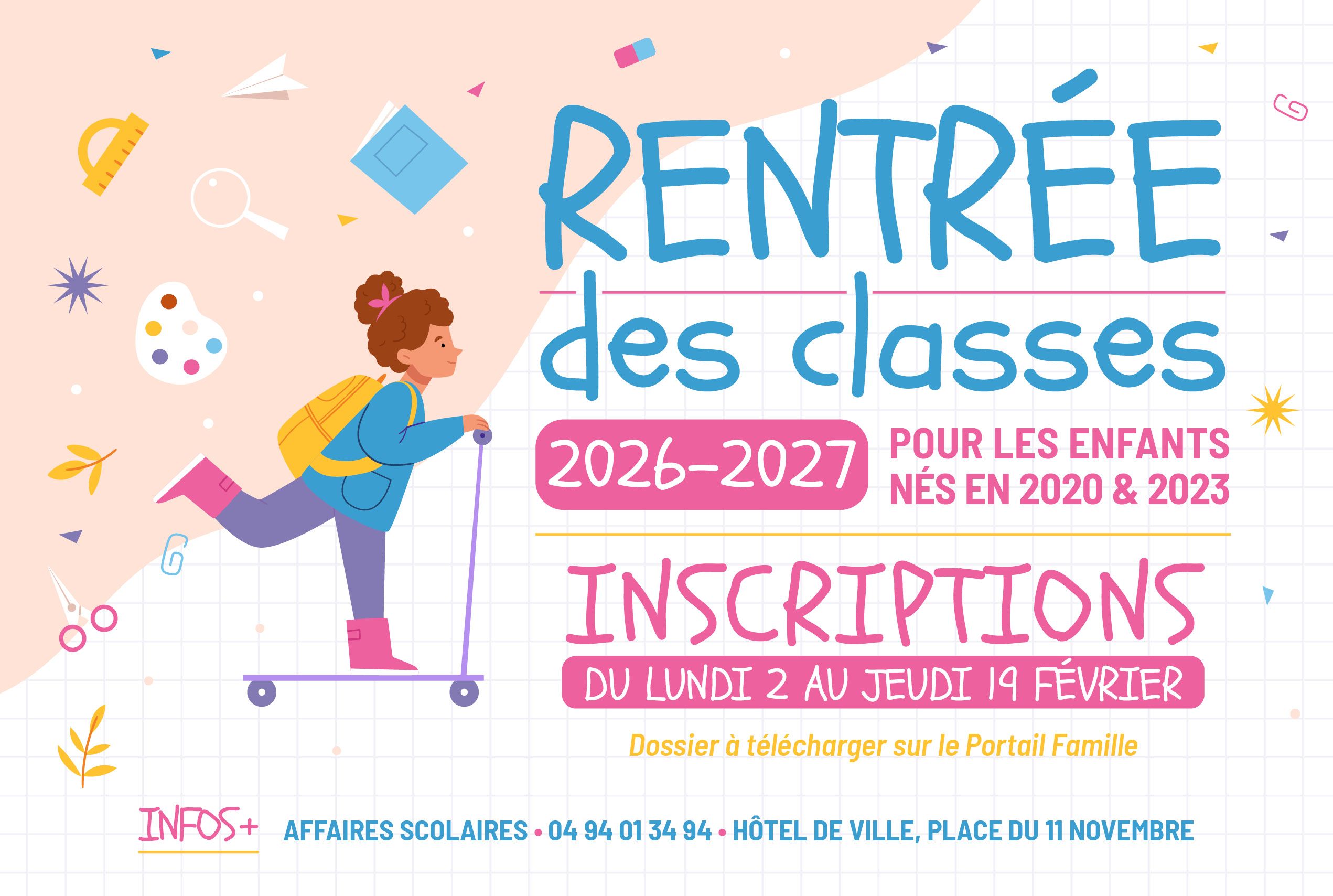 Comme chaque année, afin d'anticiper les effectifs et de préparer au mieux la rentrée de septembre prochain, le Service des Affaires Scolaires ouvrira prochainement les inscriptions scolaires pour les premières rentrées en maternelles et au CP en 20265/2027.